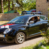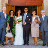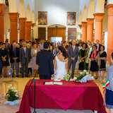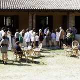 The cerimony has took place in the San Fabiano and Sebastiano abbey in Monte San Pietro. Tenuta Bonzara, in the little village of San Chierlo hosted the banquet.